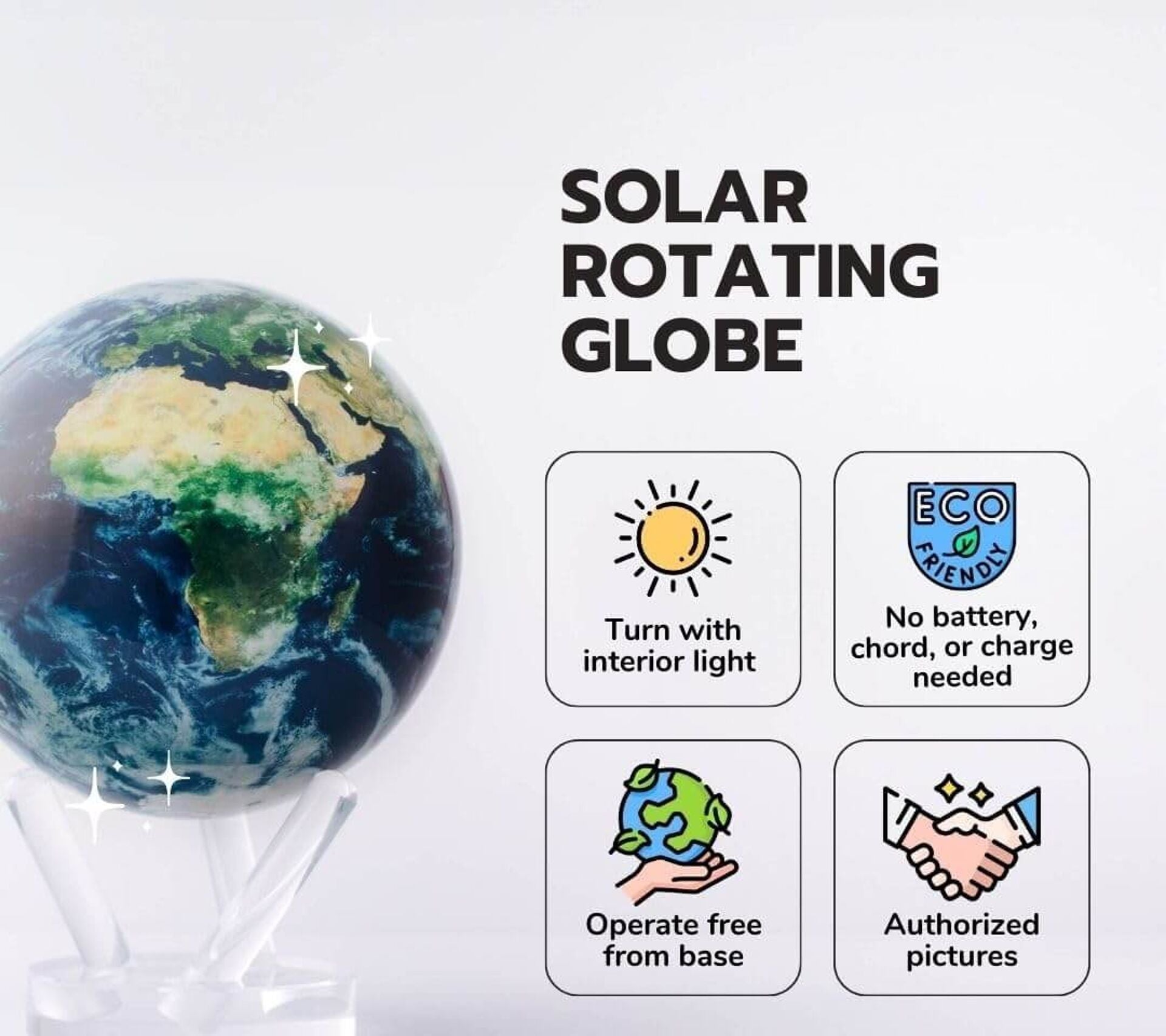 - Part of the Sun, Earth, and Moon Collection – Complete your celestial display with our Sun and Moon MOVA Globes.