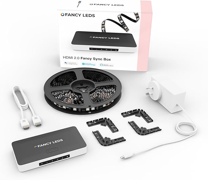 Experience unparalleled cinematic immersion with the Fancy Sync Box. Enjoy precise color matching directly from HDMI data, seamlessly synchronized with Smart LEDs for vivid, lag-free lighting. Compatible with 4K 60Hz HDR and Dolby Vision via HDMI 2.0b, it includes two RGBIC LED strips and ensures flawless 4K streaming with HDCP 2.2 compliance.